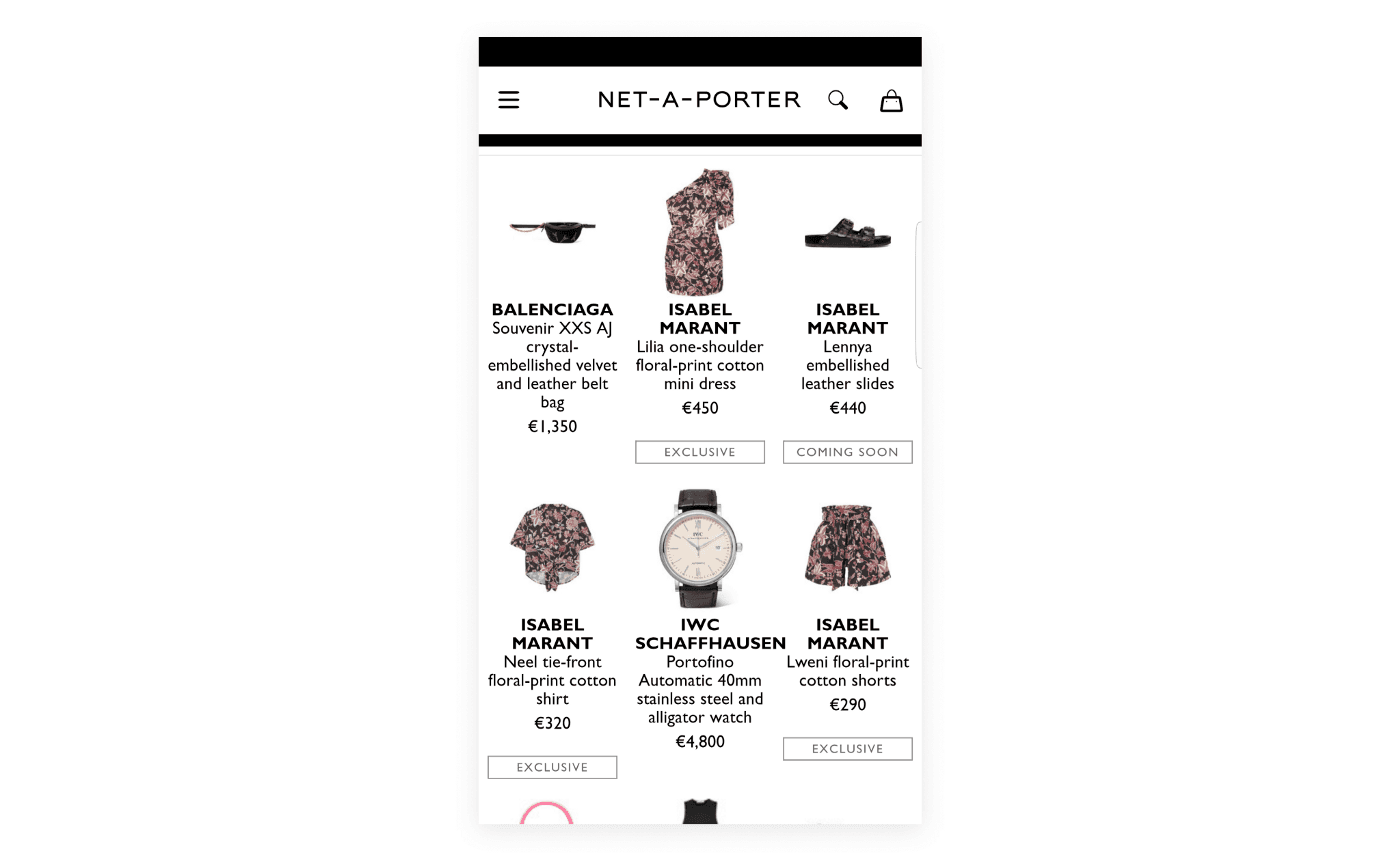 And the same thing in Net-a-Porter mobile app. You can not identify what image the caption belongs to. There is too much cognitive overload…